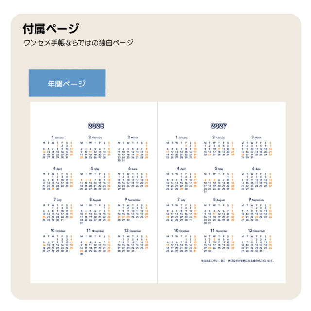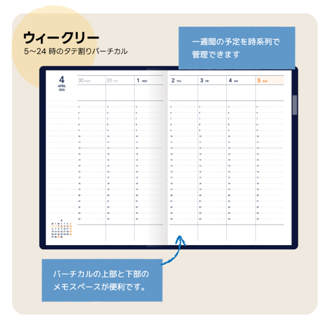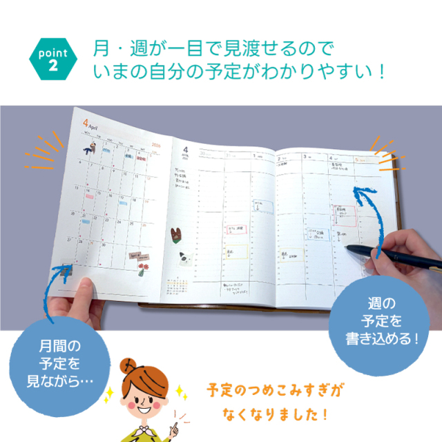 セパレートダイアリー、TETEFUは、月間と週間が一緒に確認できる為重宝しています。
