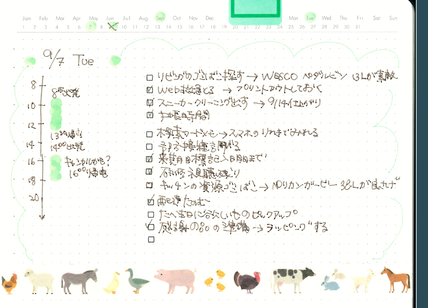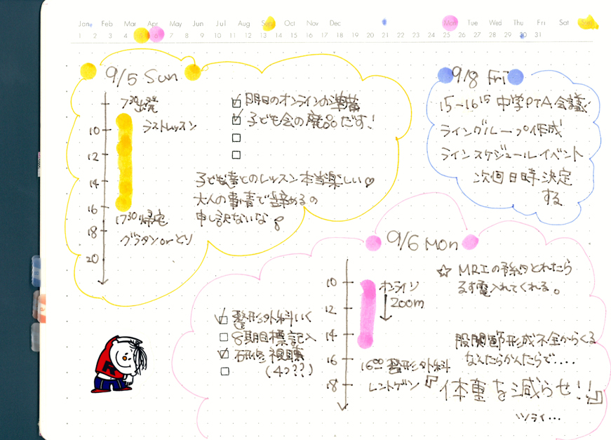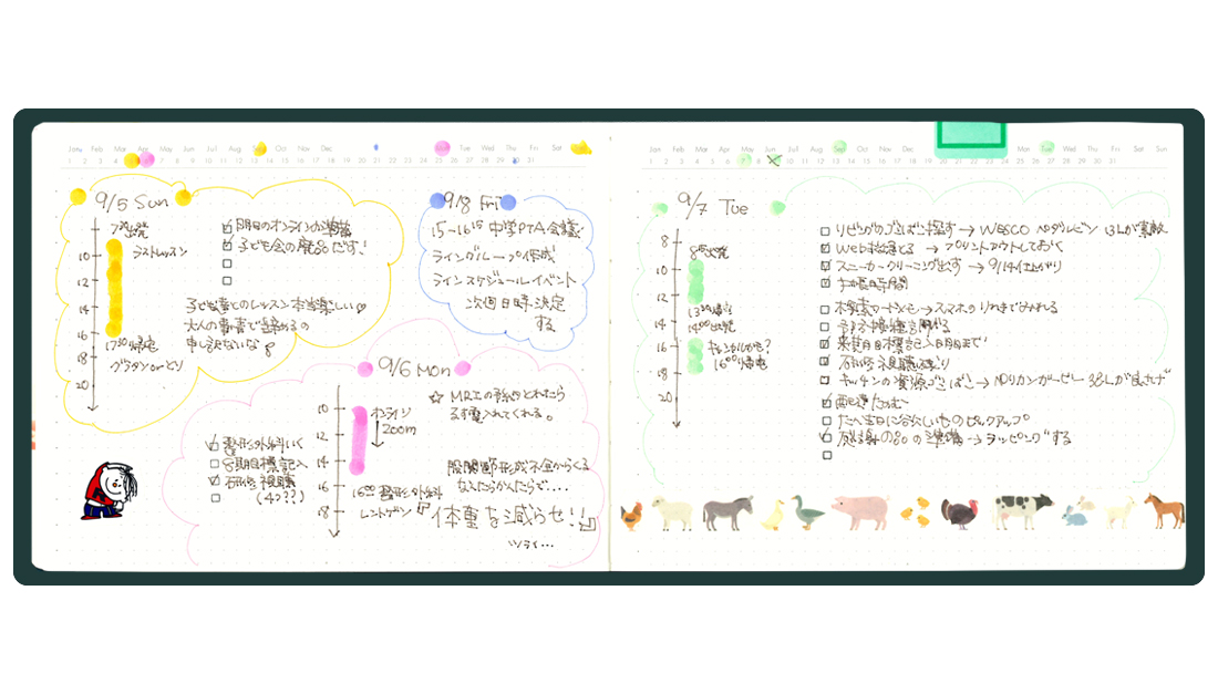 あえて枠などで区切らないで週間の予定を記録。ログとして日々の予定を可視化できます