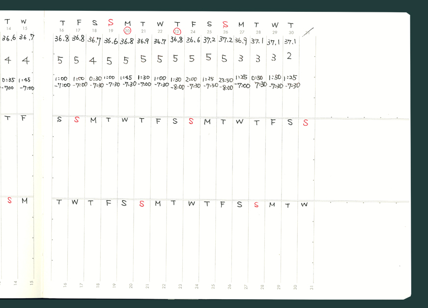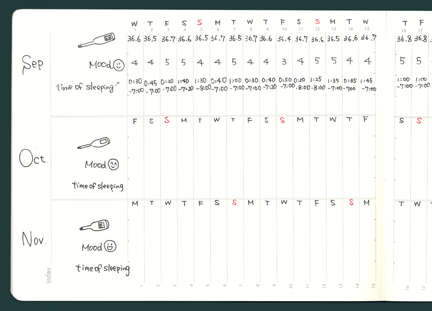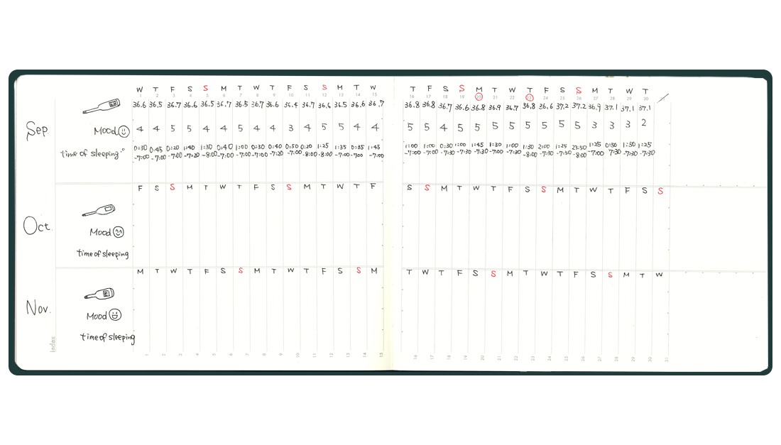 日々体温,睡眠時間などを記録