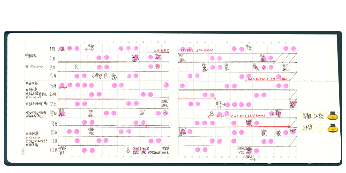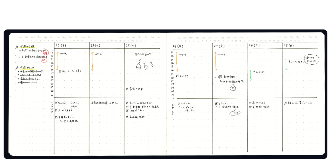 自分スタイルの手帳を作れる「コウシ手帳」。火曜日始まり、水曜日始まりのマンスリー、ドットノートを2週間分のスケジュール管理に!など人によって使い方はさまざまです。ぜひ使い方の参考に