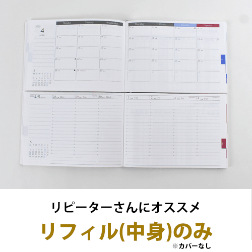 セパレートダイアリーとは1冊の手帳が上下で分かれている仕様の手帳です。 朝から晩まで予定がびっしり。仕事・家事・育児に追われる毎日。そんな“忙しい私たち”の味方が、セパレートダイアリーです。 上段で「月全体の流れ」を、下段で「週(ウィークリータイプ)や日々の詳細(デイリータイプ)」を一目でチェック。 書きやすさにこだわった手帳会社こだわりの製本で、毎日開くのがちょっと楽しくなる。使うほどに、暮らしが整う手帳です。