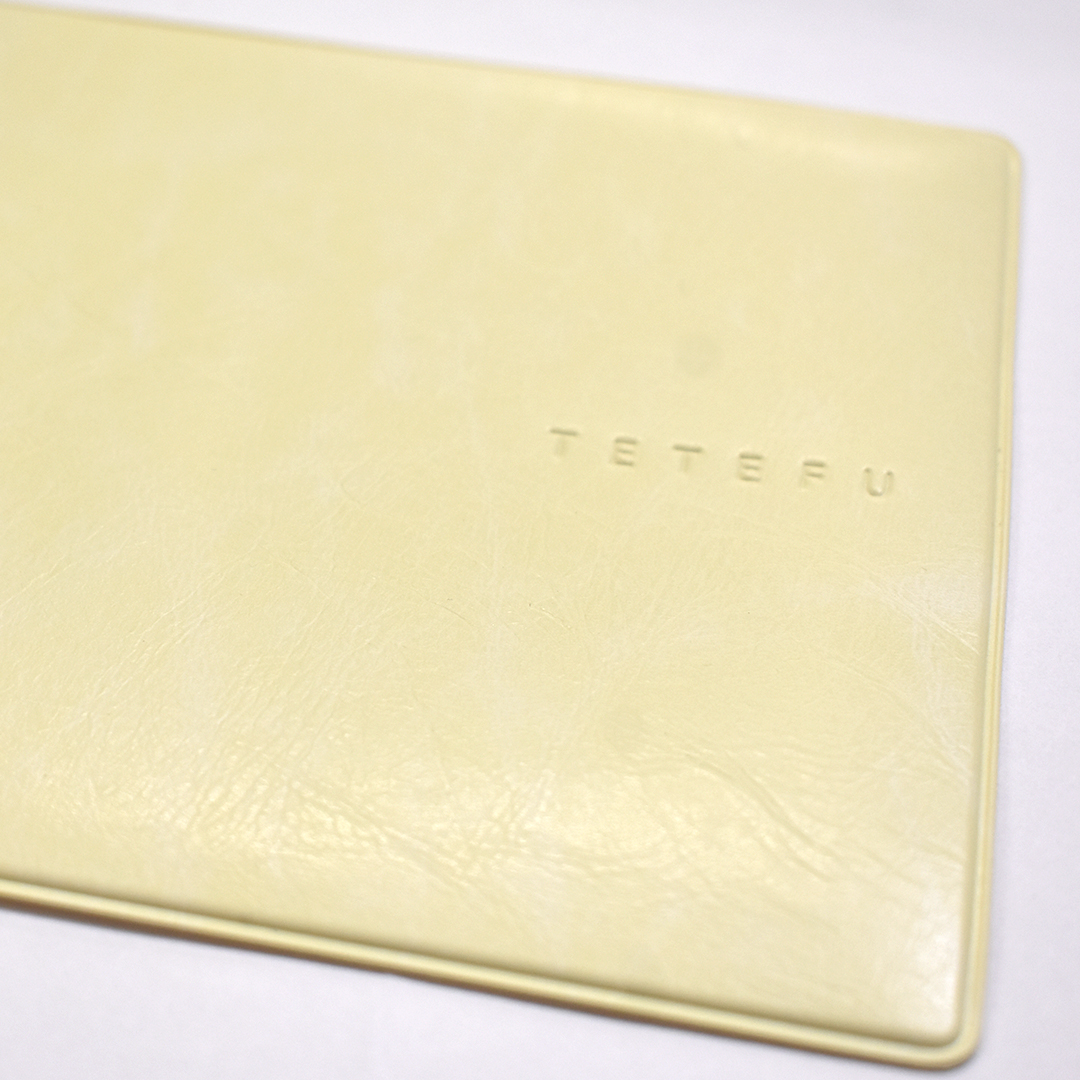 PVC素材を採用。レザー風の上品な質感で、水濡れや曲げ伸ばしにも耐えられる丈夫な素材です。